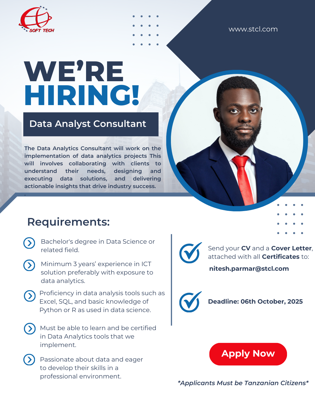 Minimum 3 years’ experience in ICT solution preferably with exposure to data analytics.