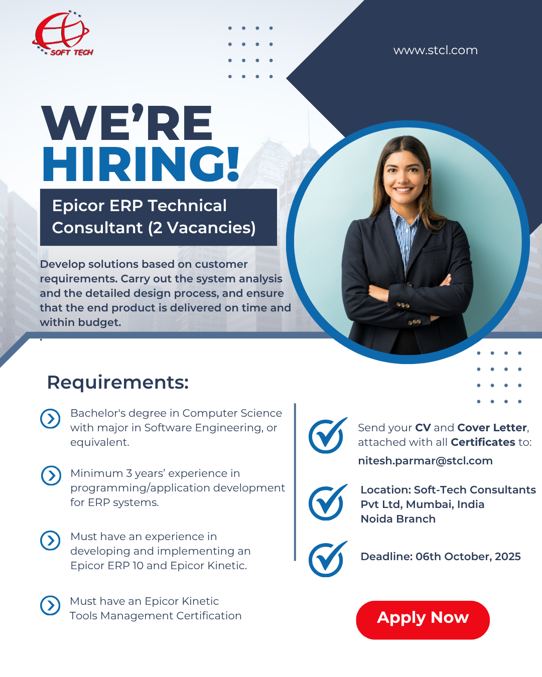 Must have an experience in developing and implementing an Epicor ERP 10 and Epicor Kinetic.